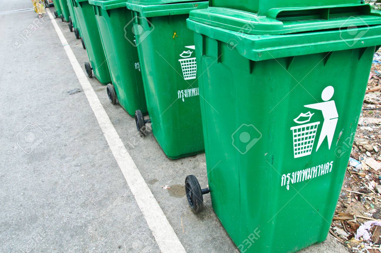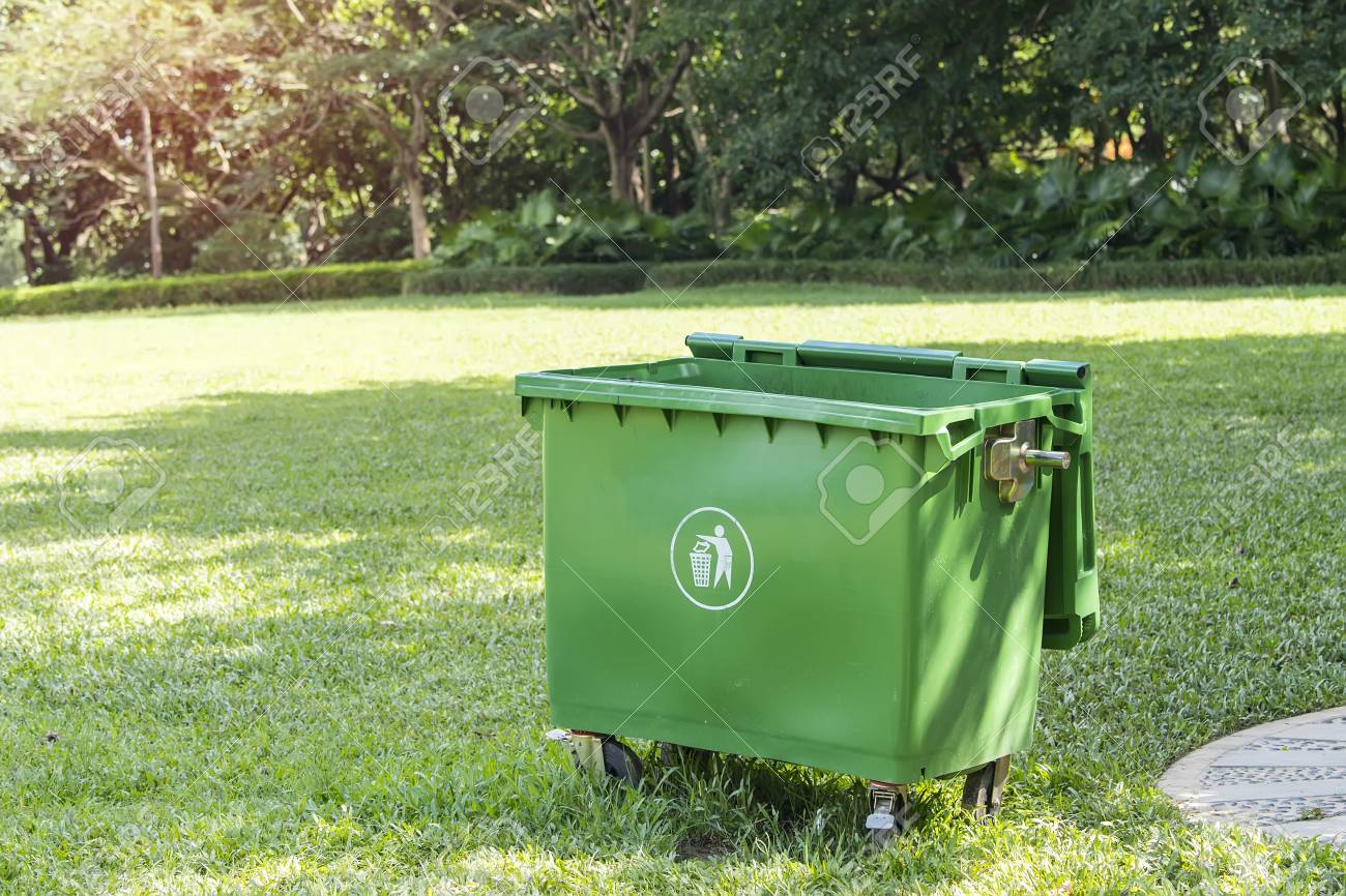 green trash can