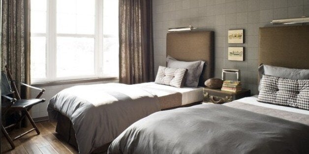 grey and beige bedroom