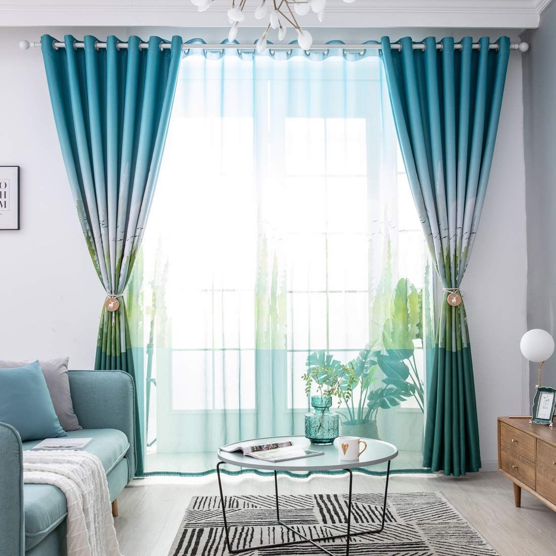grey and green curtains