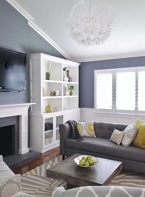 grey and green living room