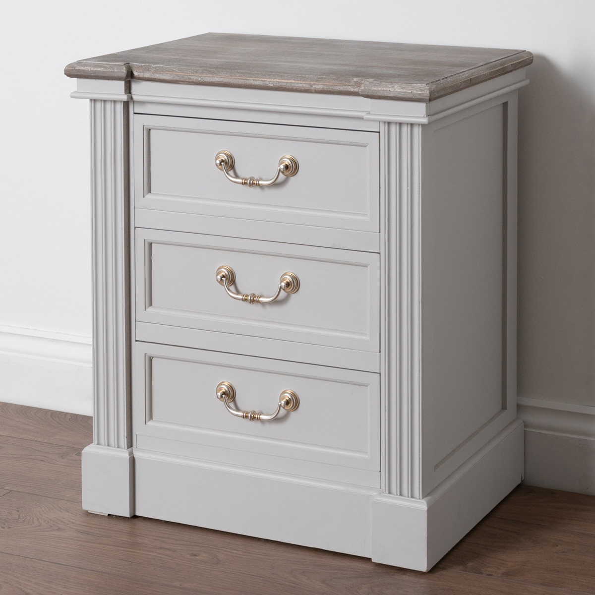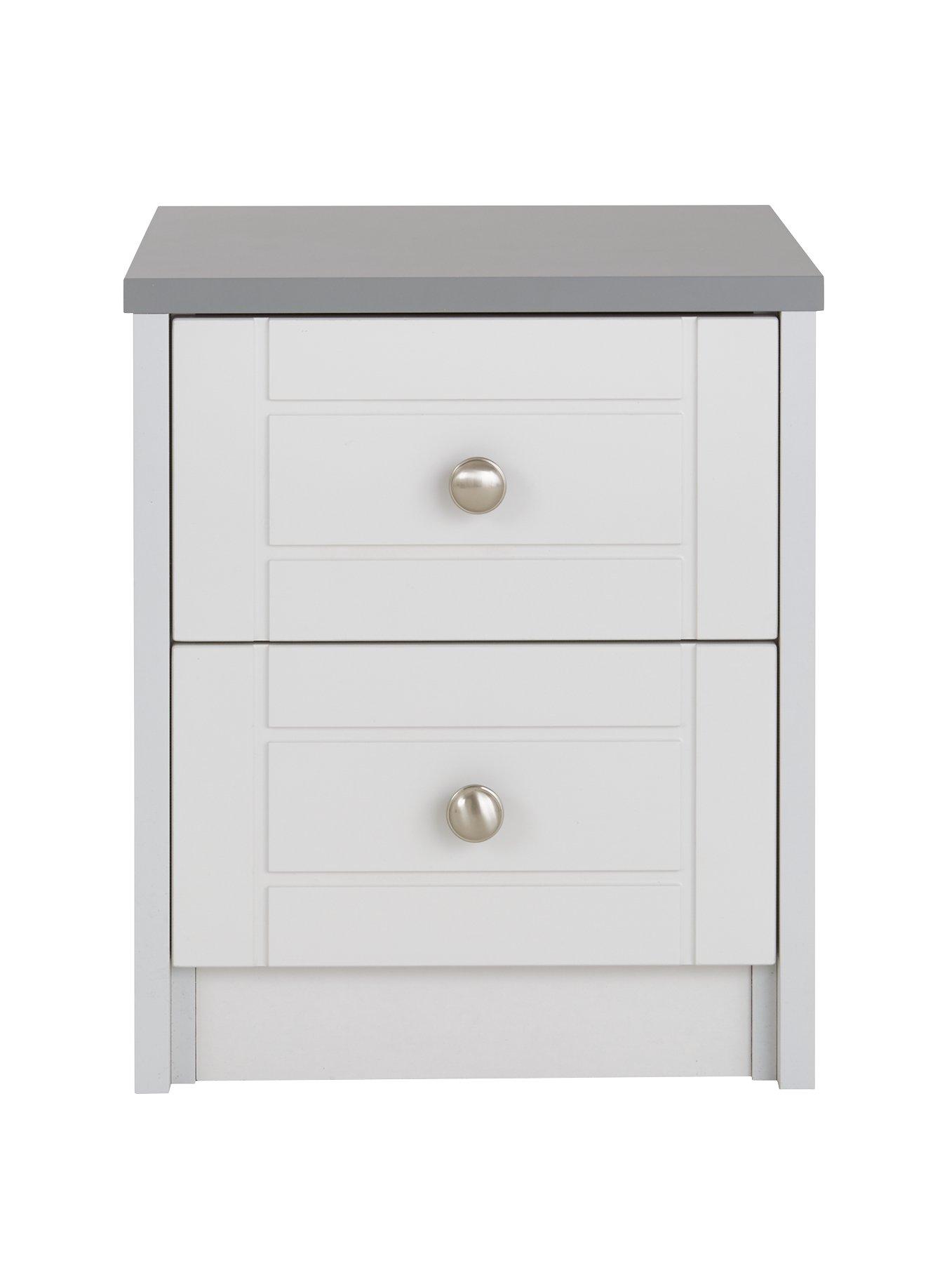 grey and white bedside table