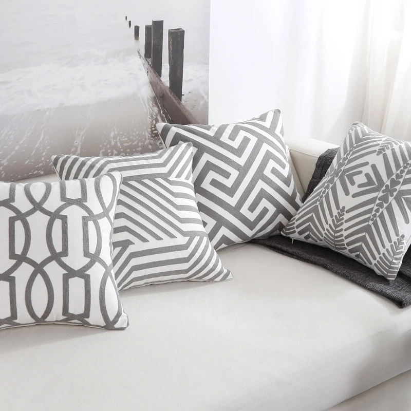 grey and white throw pillows