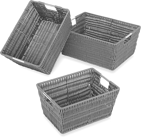 grey baskets for storage