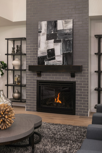 grey brick fireplace