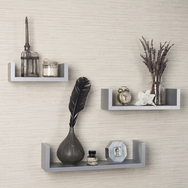grey floating shelves