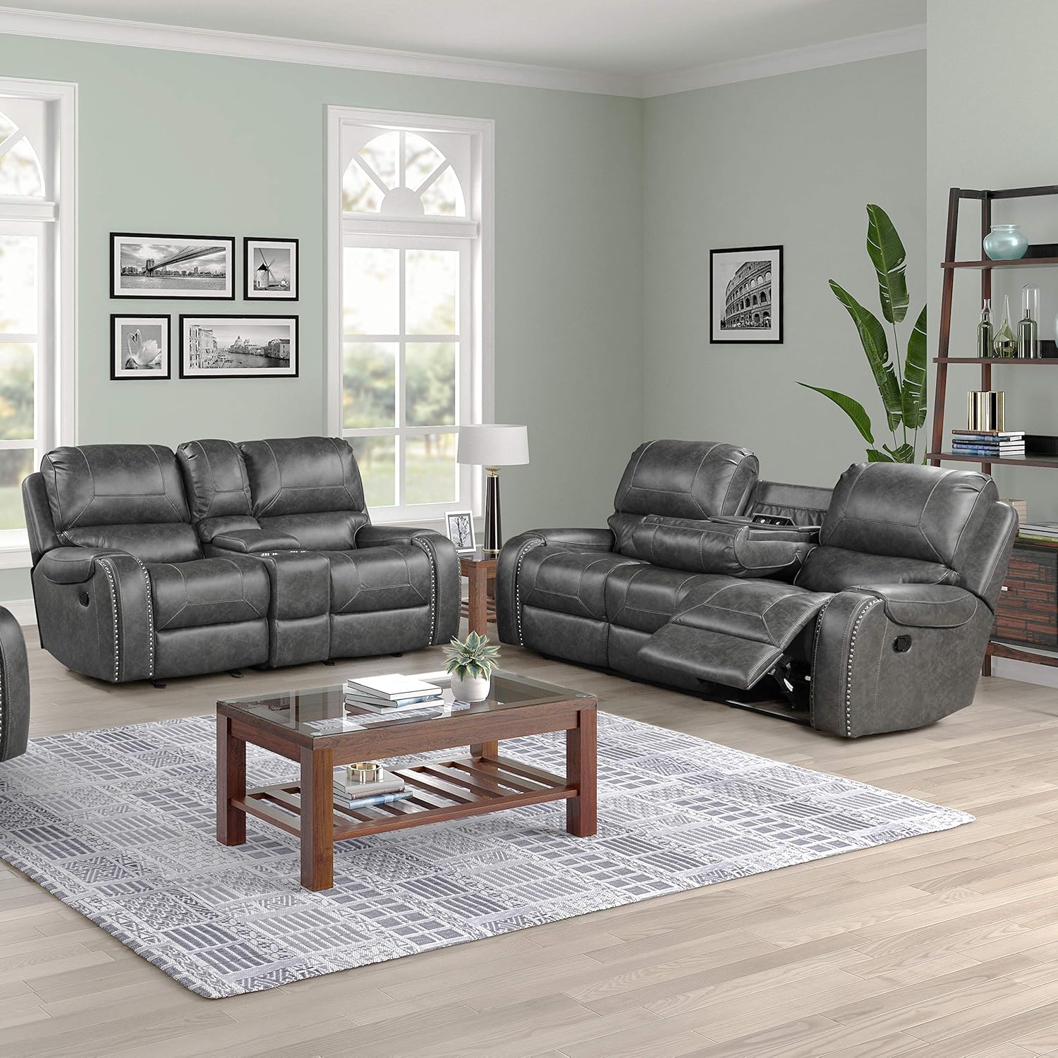 grey leather sofa set