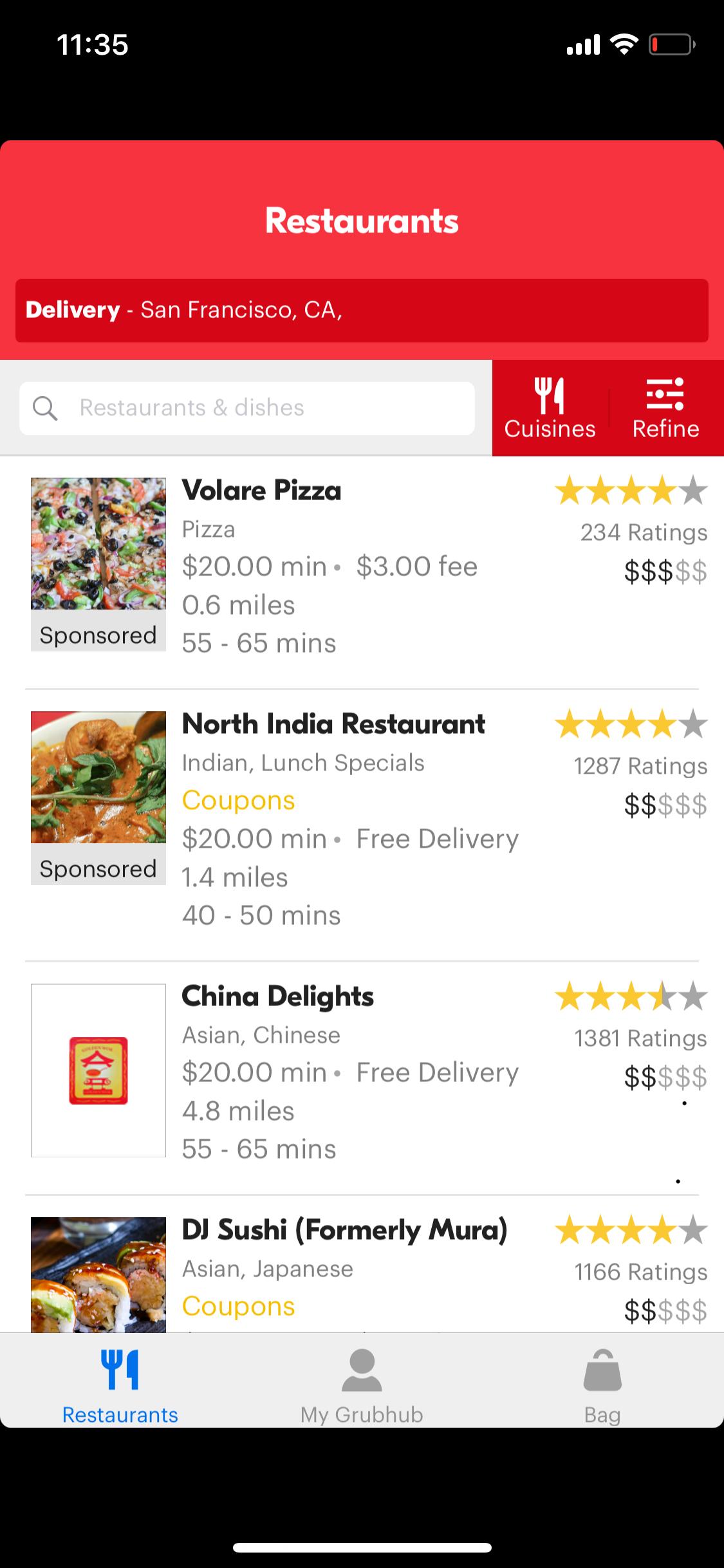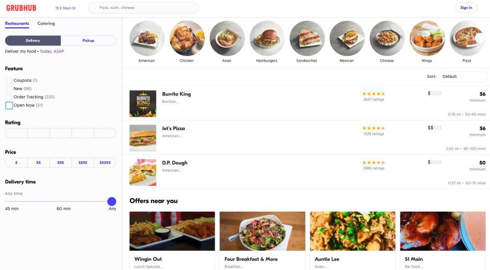 grubhub menu
