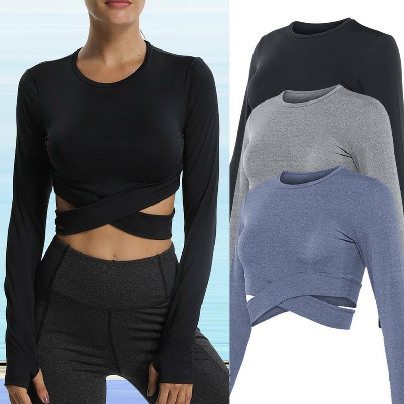 gym crop tops long sleeve