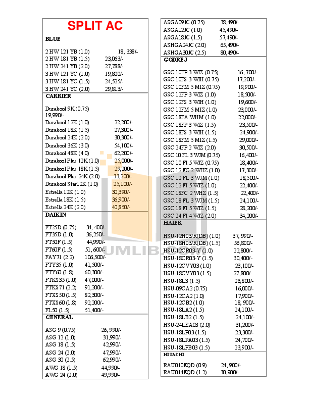haier ac price list