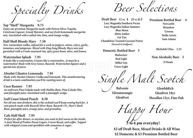 half shell menu