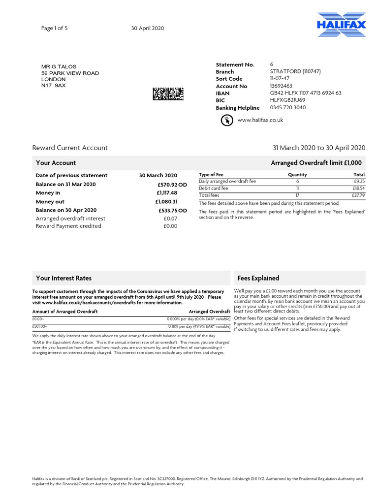 halifax overdraft charges