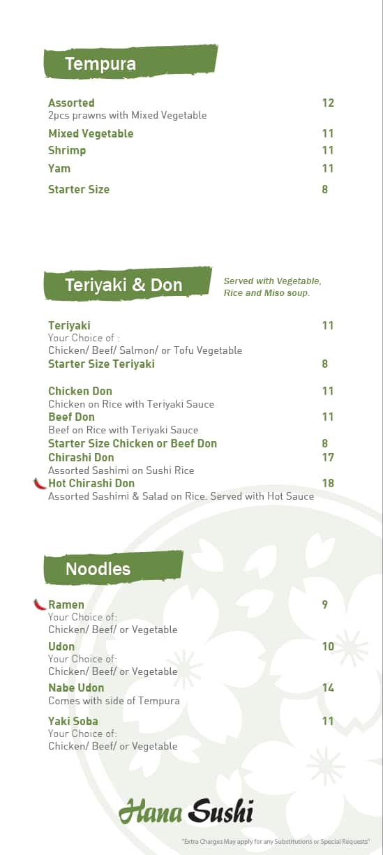 hana sushi menu