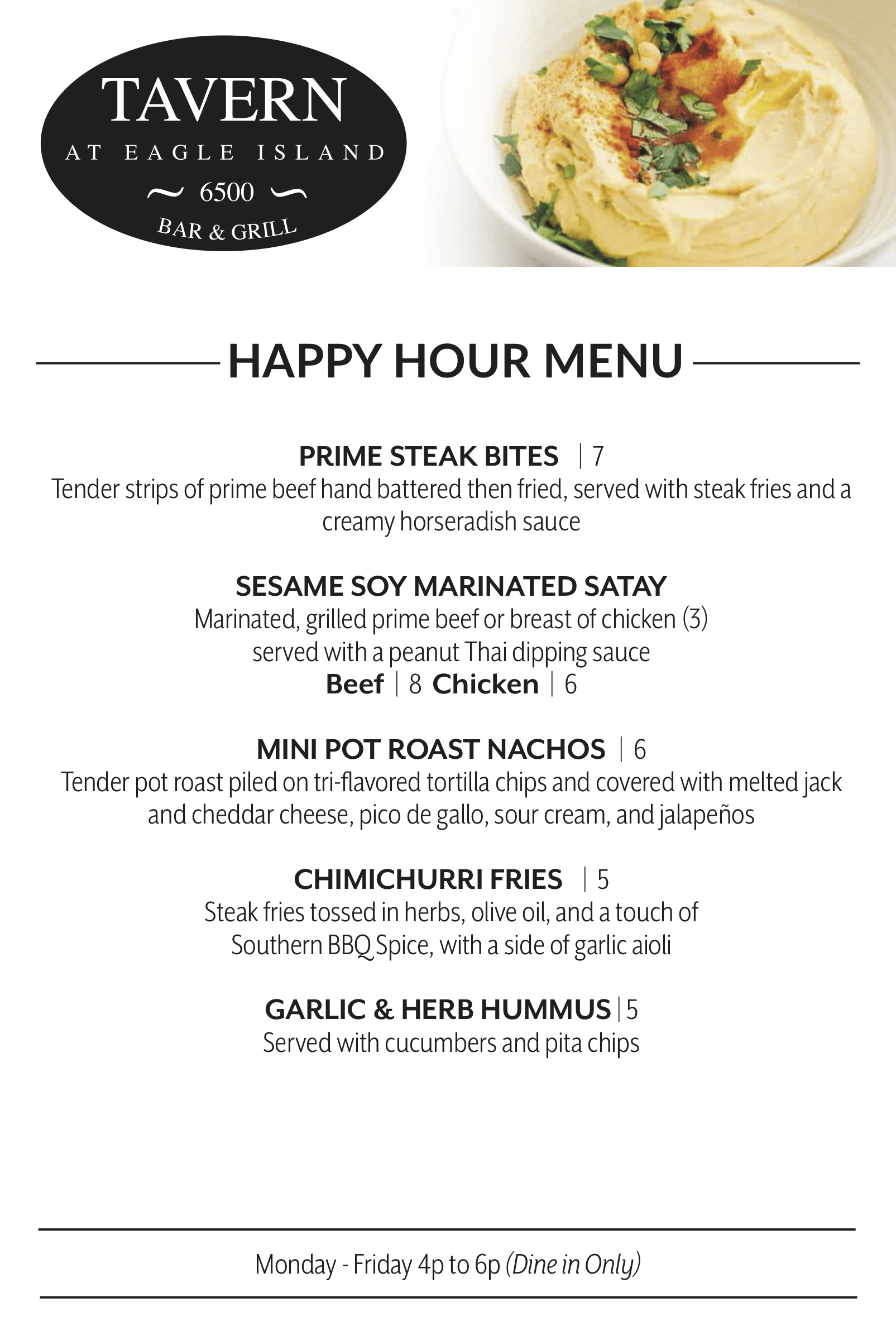 happy hour menu