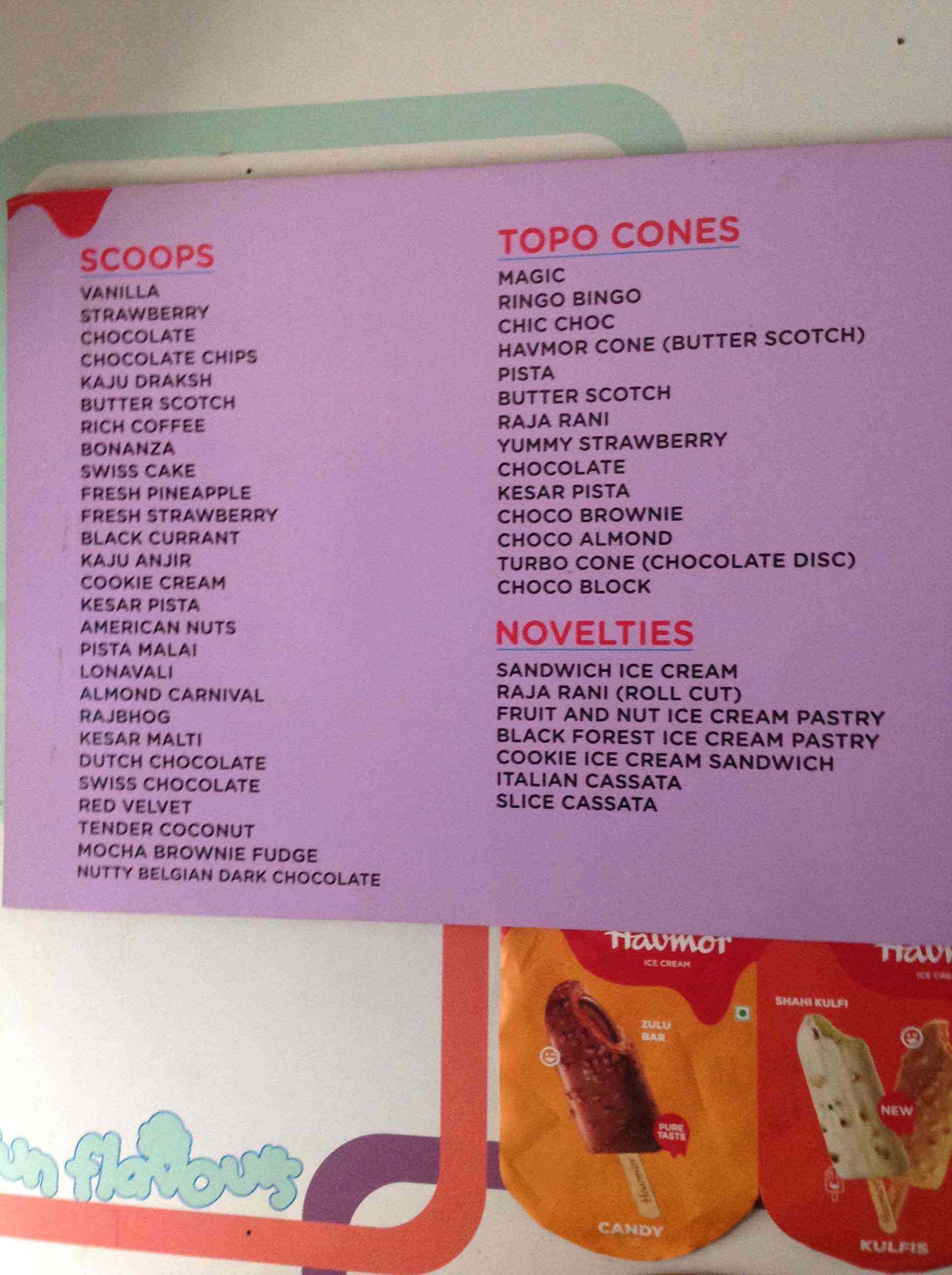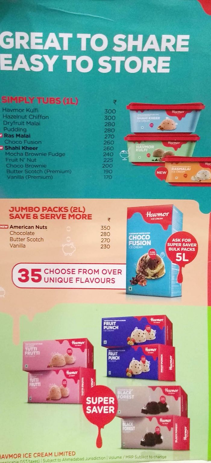 havmor ice cream menu