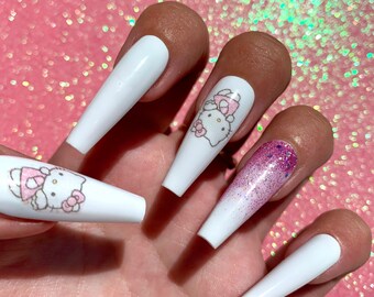 hello kitty acrylic nails