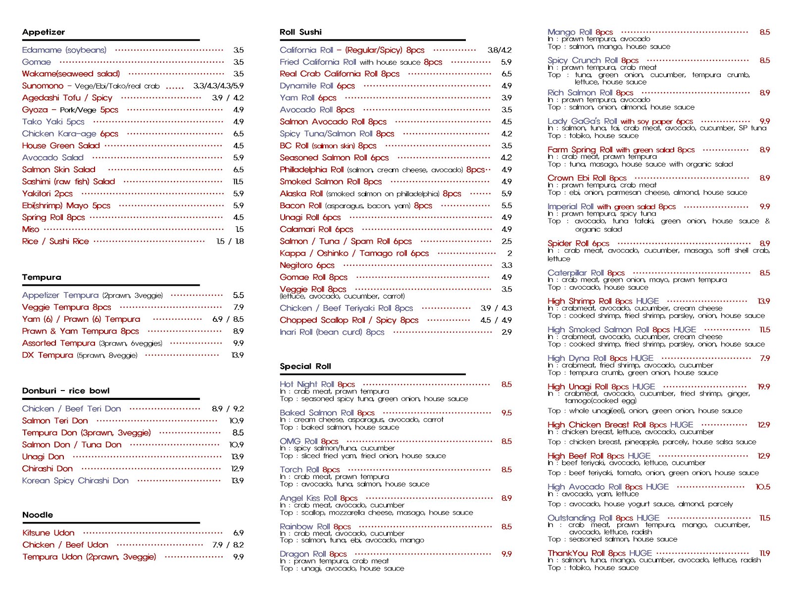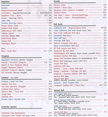 hi sushi menu