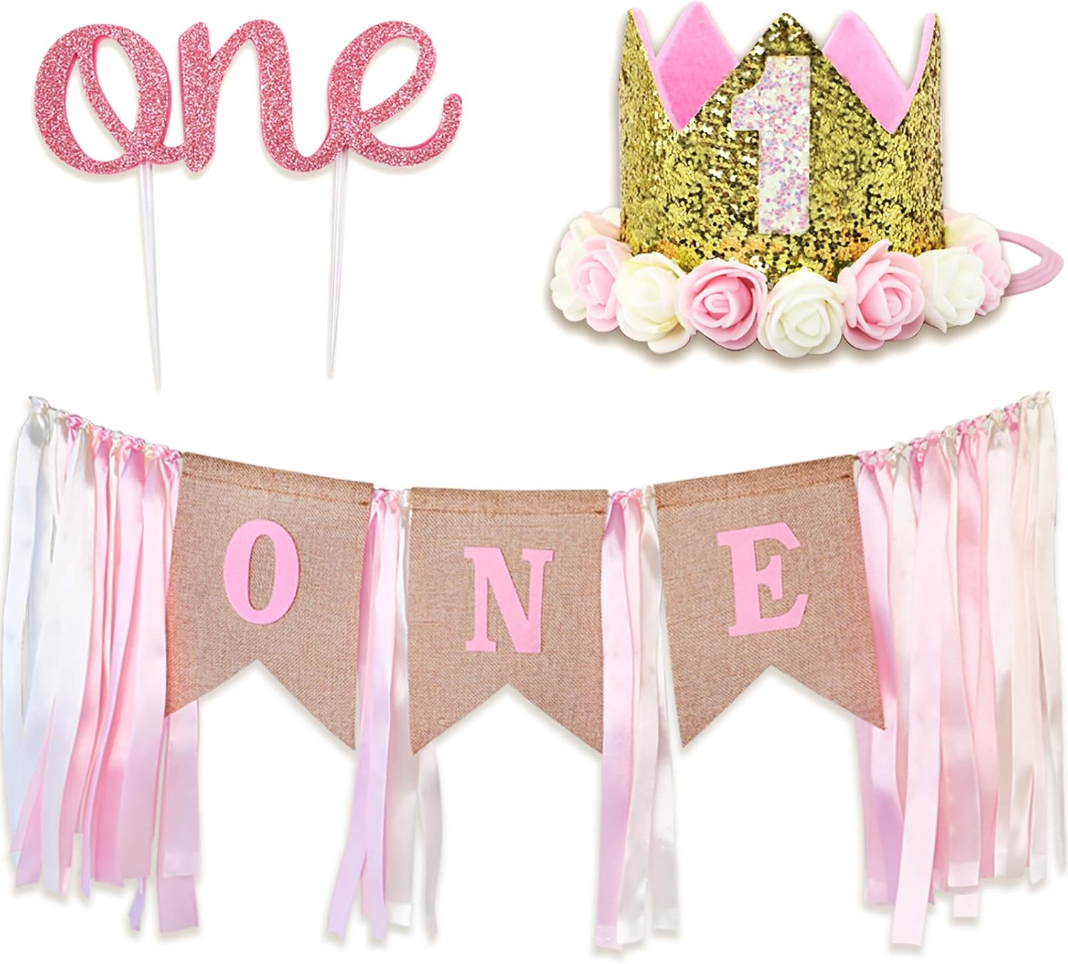 high chair decorations 1st birthday girl