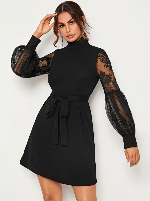 high neck dress with sleeves