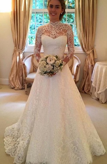 high neck long sleeve wedding dress