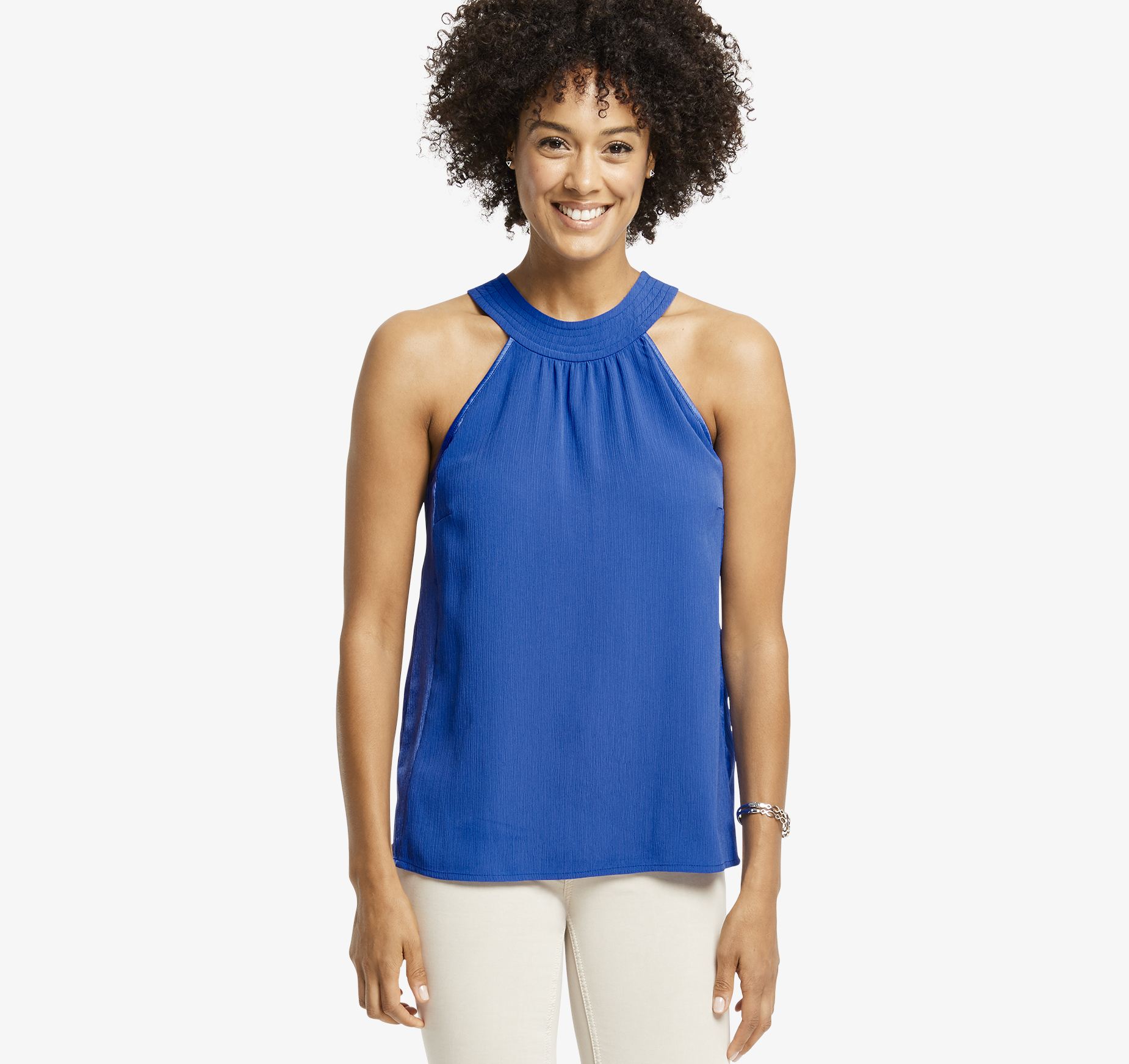 high neck sleeveless blouse