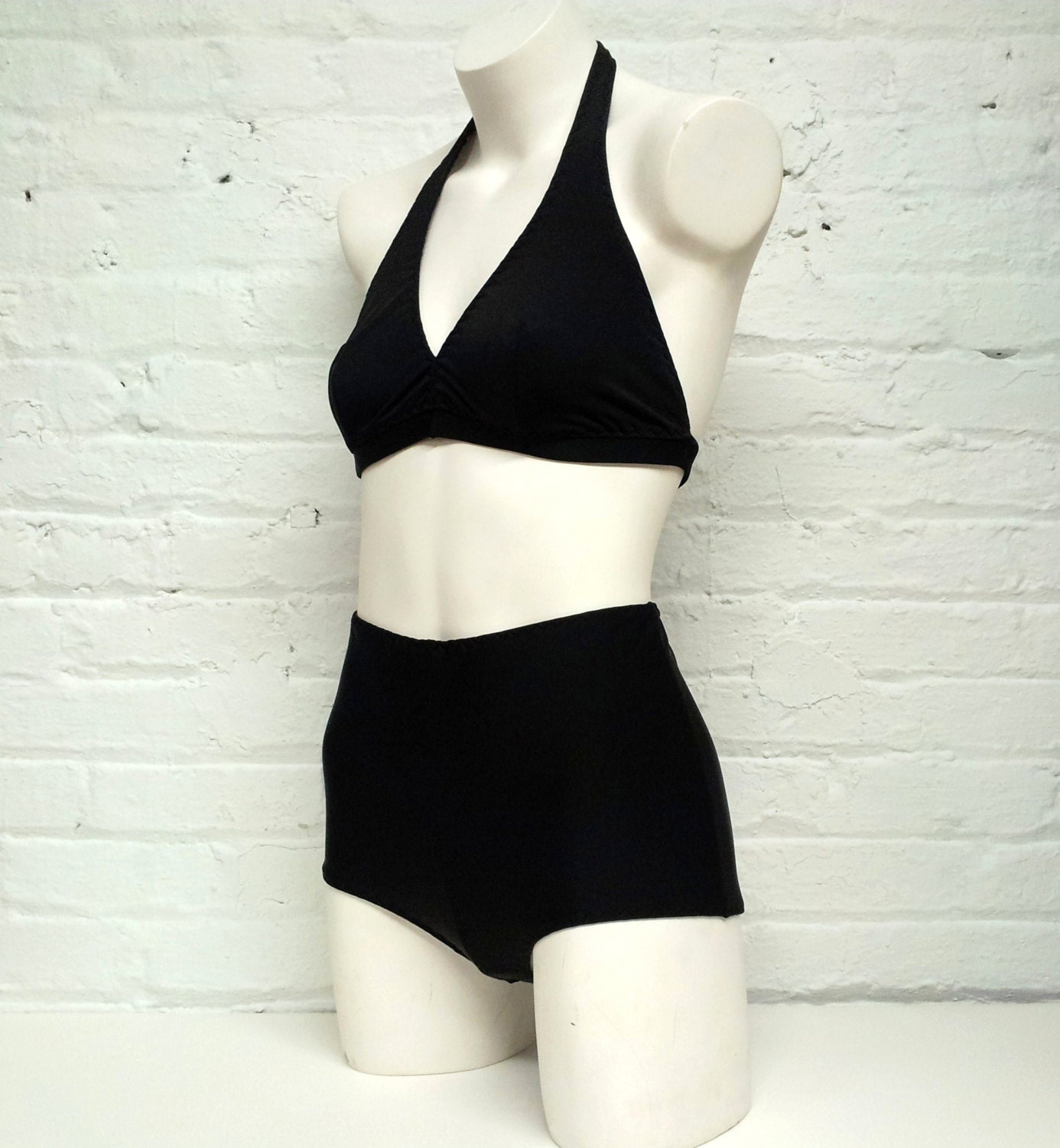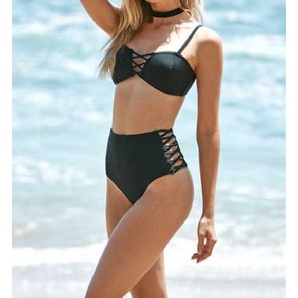 high waisted bikini black