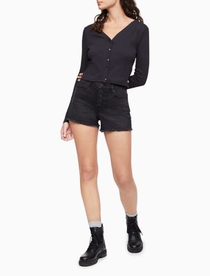 high waisted black jean shorts