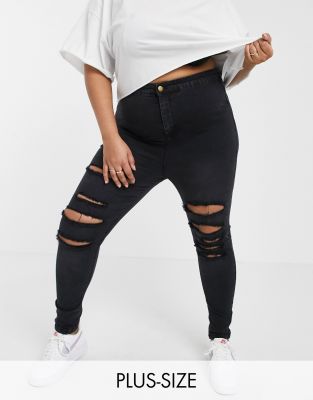 high waisted black ripped skinny jeans