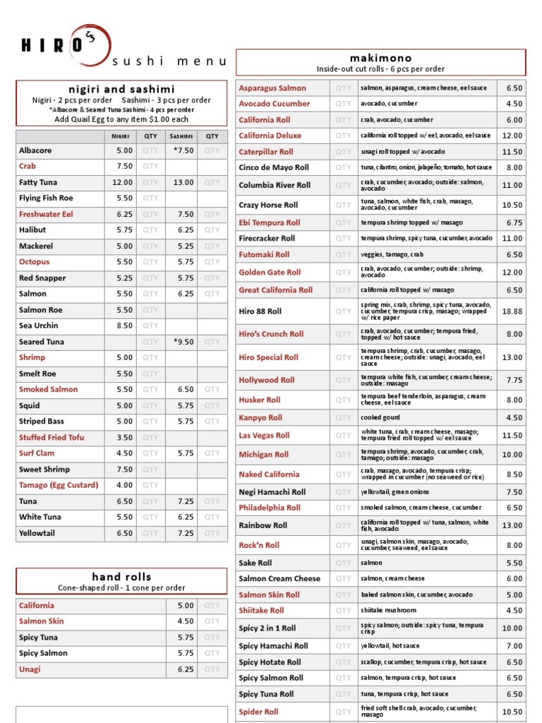 hiro menu