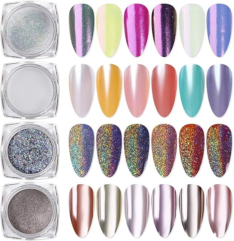 holographic powder nails
