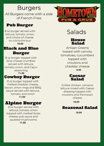 hometown burger menu