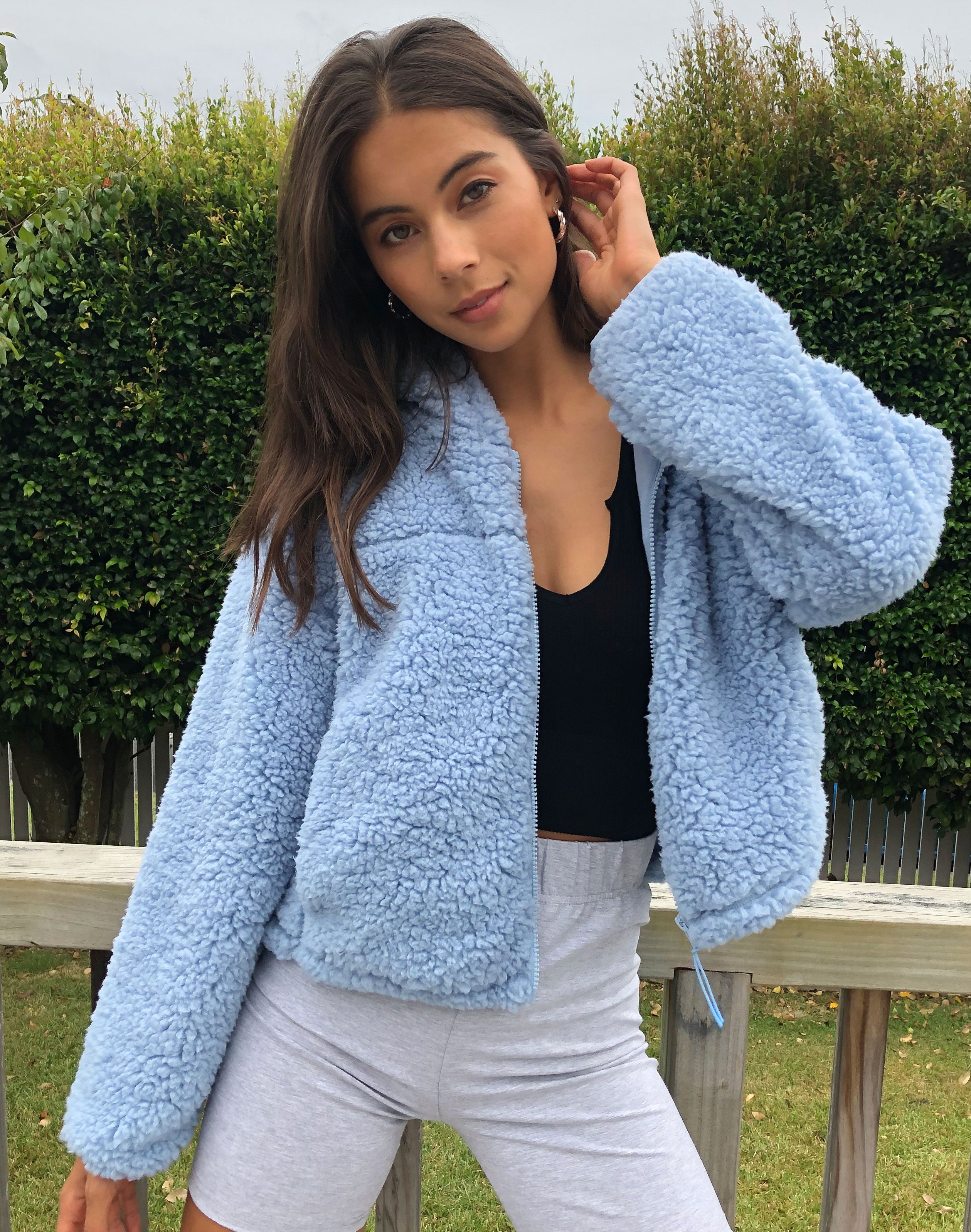 hooded teddy jacket