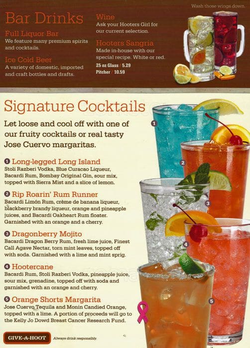 hooters drink menu