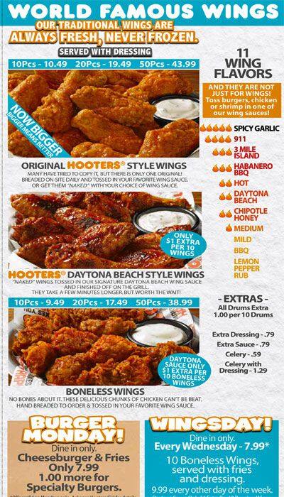 hooters menu near me