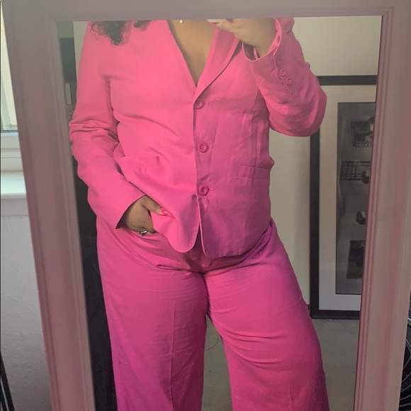 hot pink pantsuit