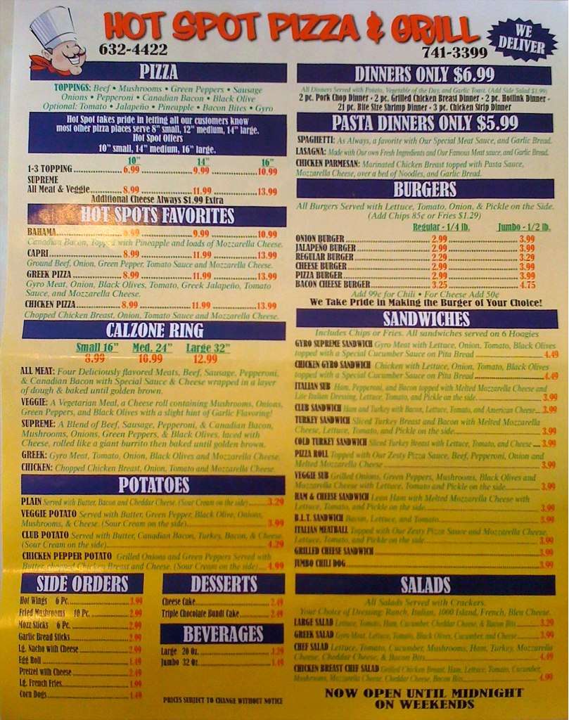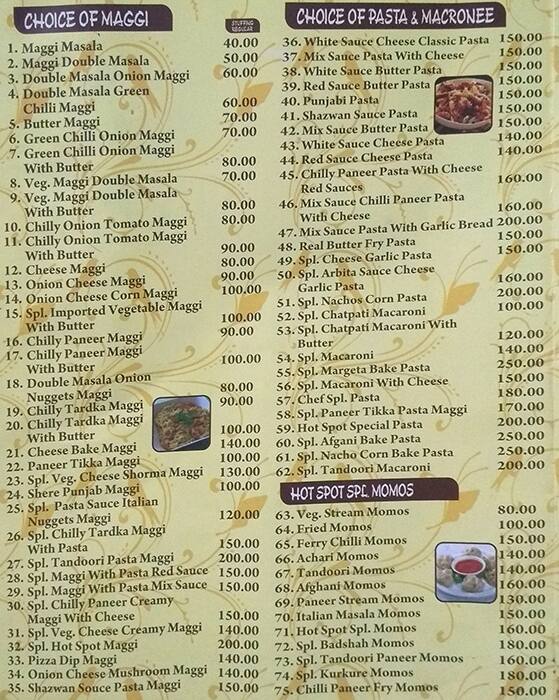 hot spot menu