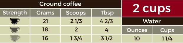 how many scoops of coffee for 4 cups