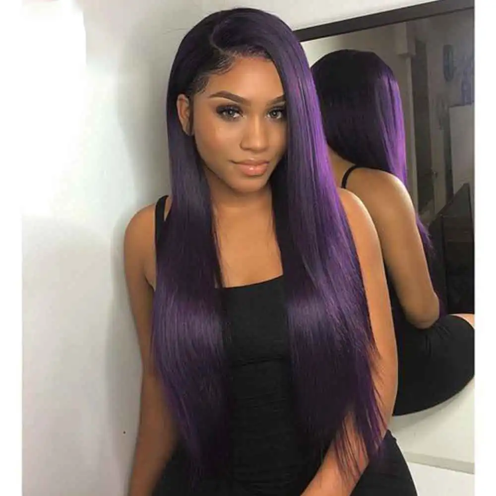 human hair purple wig