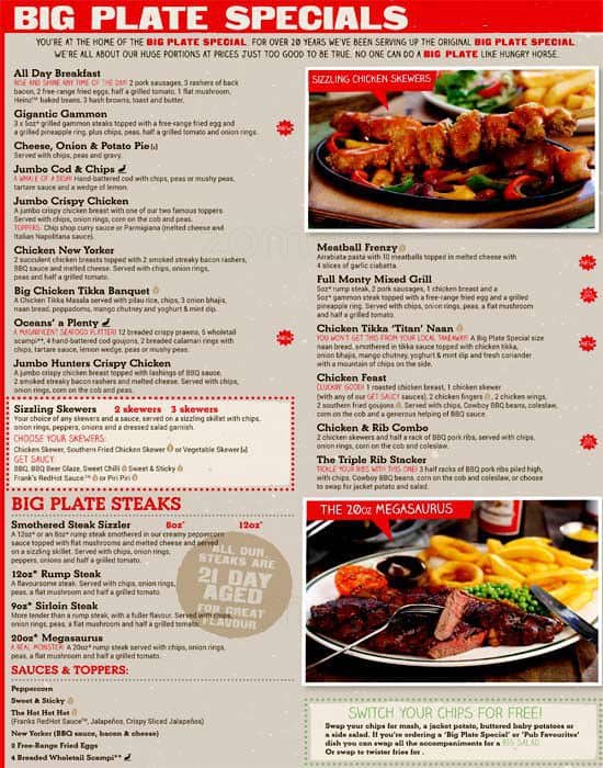 hungry horse menu