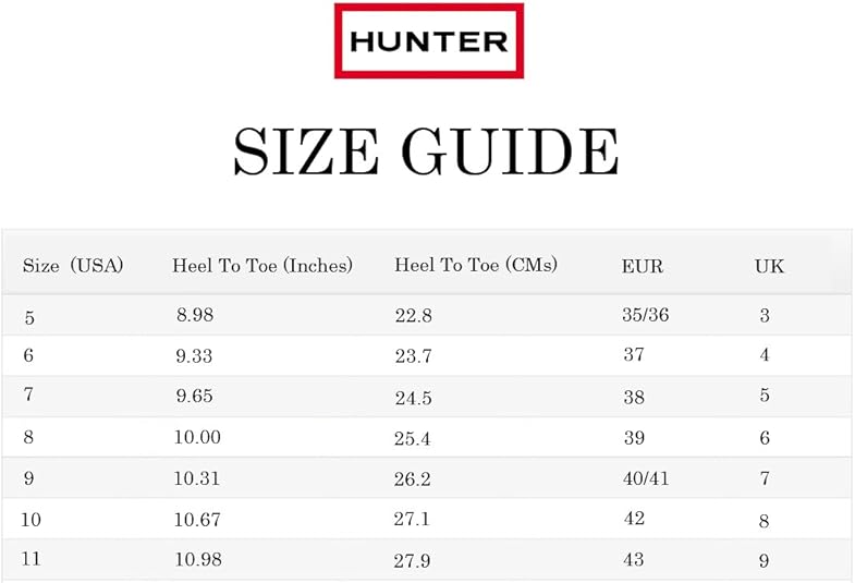 hunter boot sizes