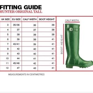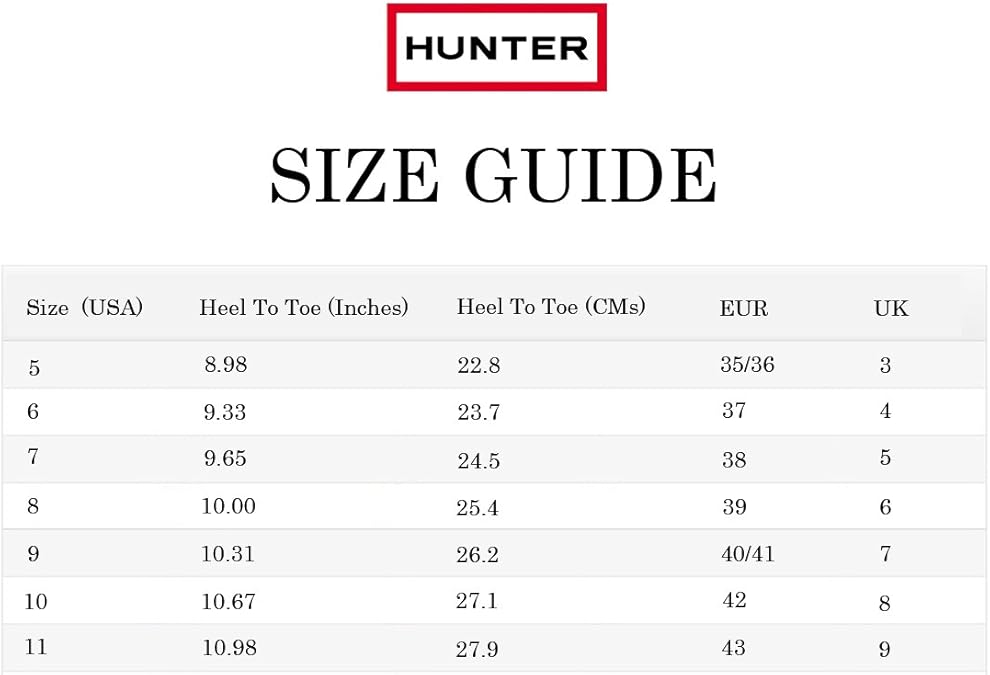 hunter boots size chart