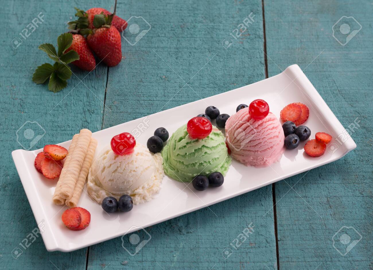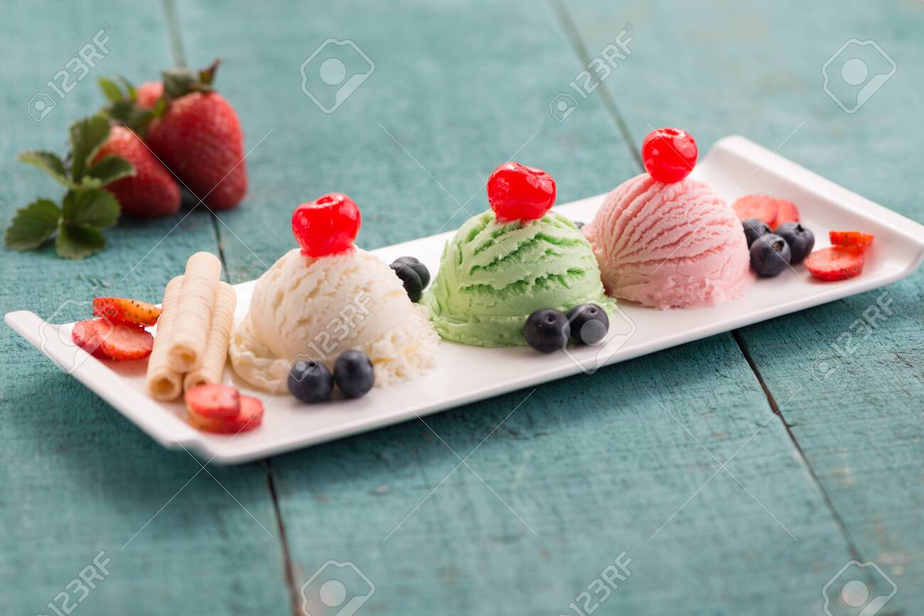 ice cream with 3 flavors