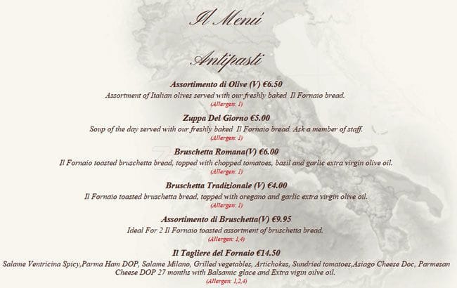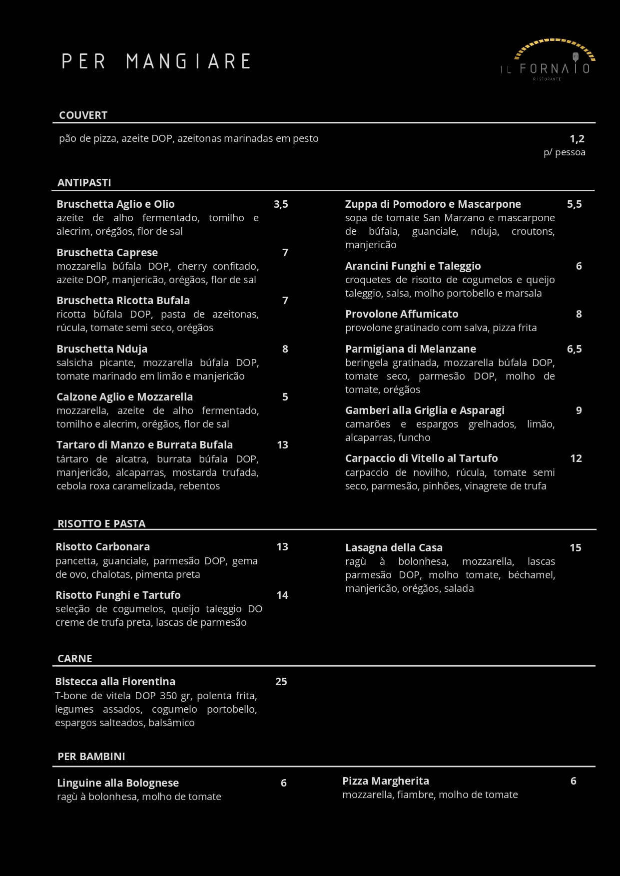 il fornaio menu