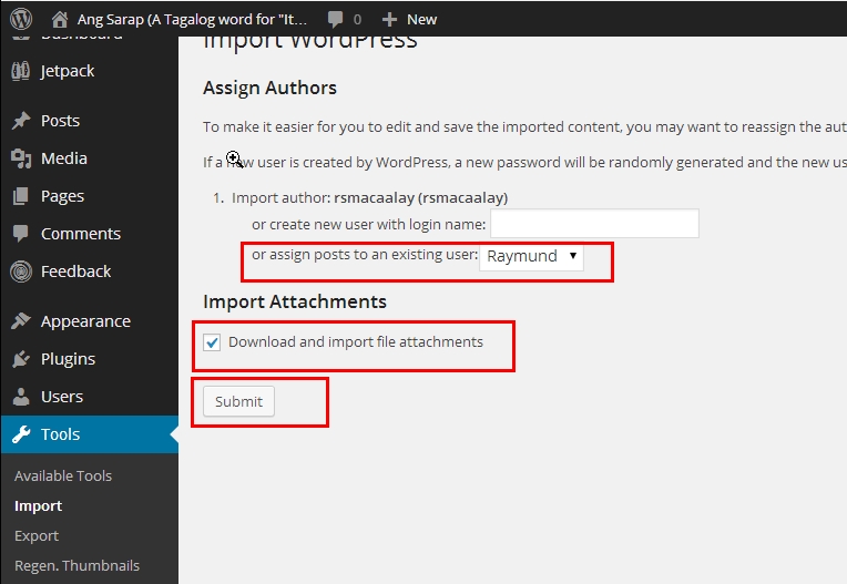 import in tagalog