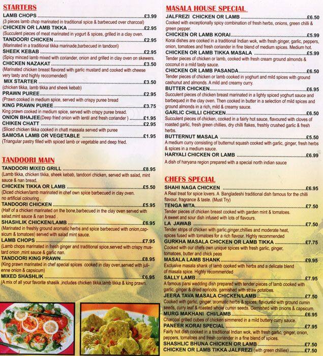 indian menu