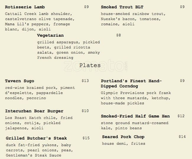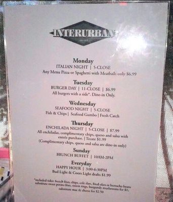 interurban menu