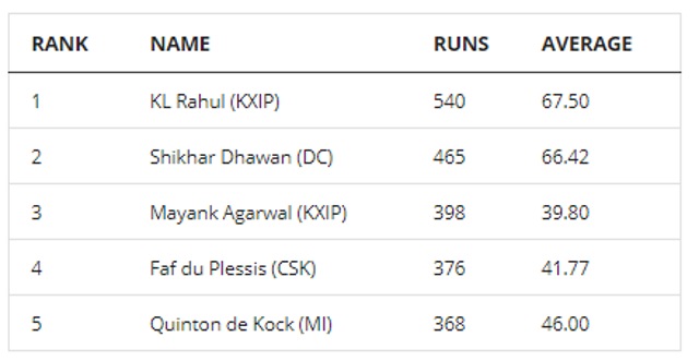 ipl 2020 run list