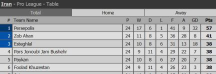 iran league table