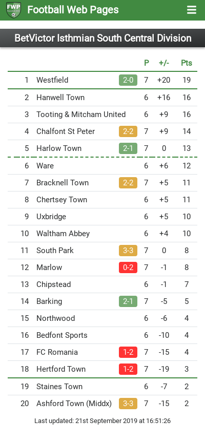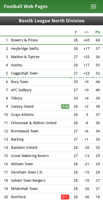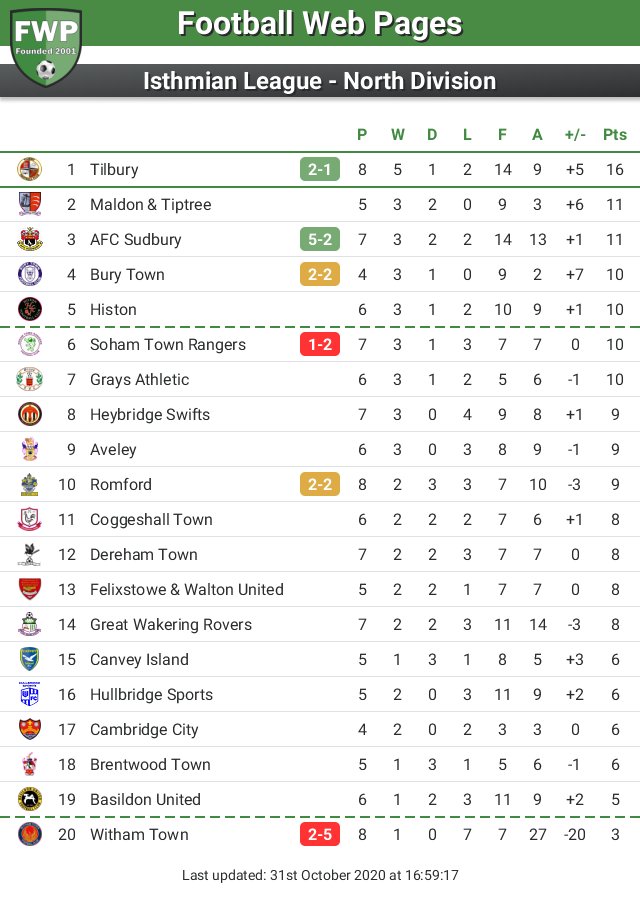 isthmian league table