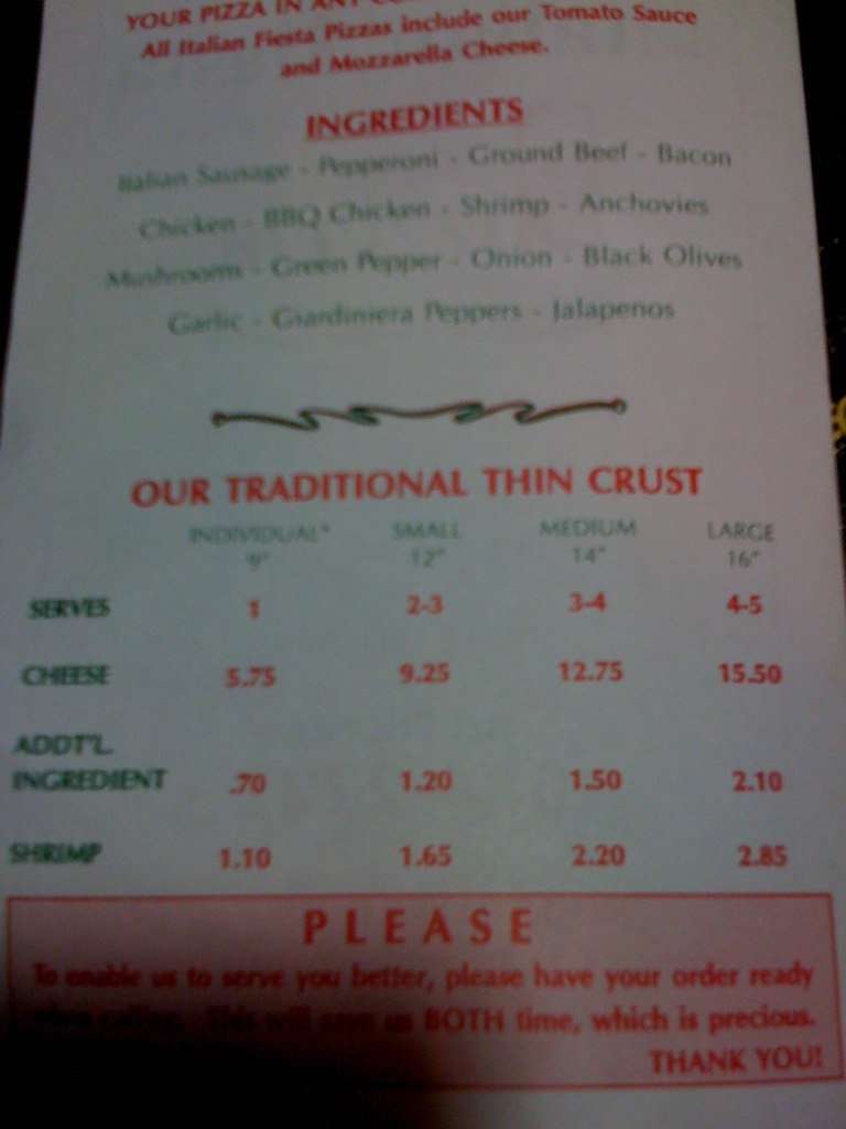 italian fiesta menu