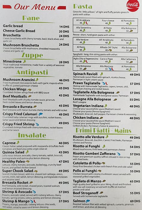 italian kitchen menu